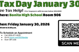 The Bonita High School Accounting students invite you to a Tax Day on Friday, January 30, 2026, from 11:30 am to 2:30 pm. Students will be preparing free tax returns for taxpayers with income below $69,000. The Accounting 1 and […]